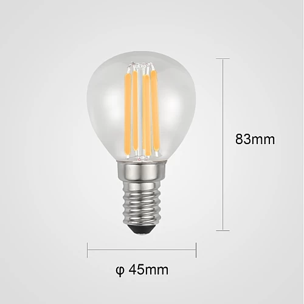 لون الانارة : اصفرمقاس قاعدة الانارة : E14القدرة : 3 واطدرجة حرارة اللون (الكلفن) : 3000Kاللومن : 256 لومنابعاد المنتج : 45* ارتفاع 83الجهد الكهربائي : 220Vعدد سنوات الضمان : 2 سنة