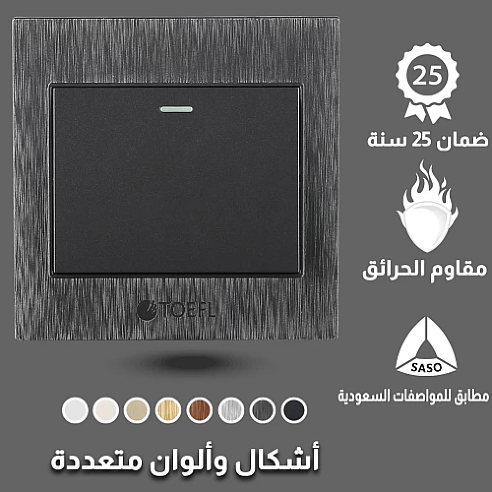 نوع المفتاح : مفتاح مفردابعاد المنتج : 7x7cmنوع التركيب : غاطس في الحائطلون الغطاء : رمادي جرافيتعدد سنوات الضمان : 25 سنة