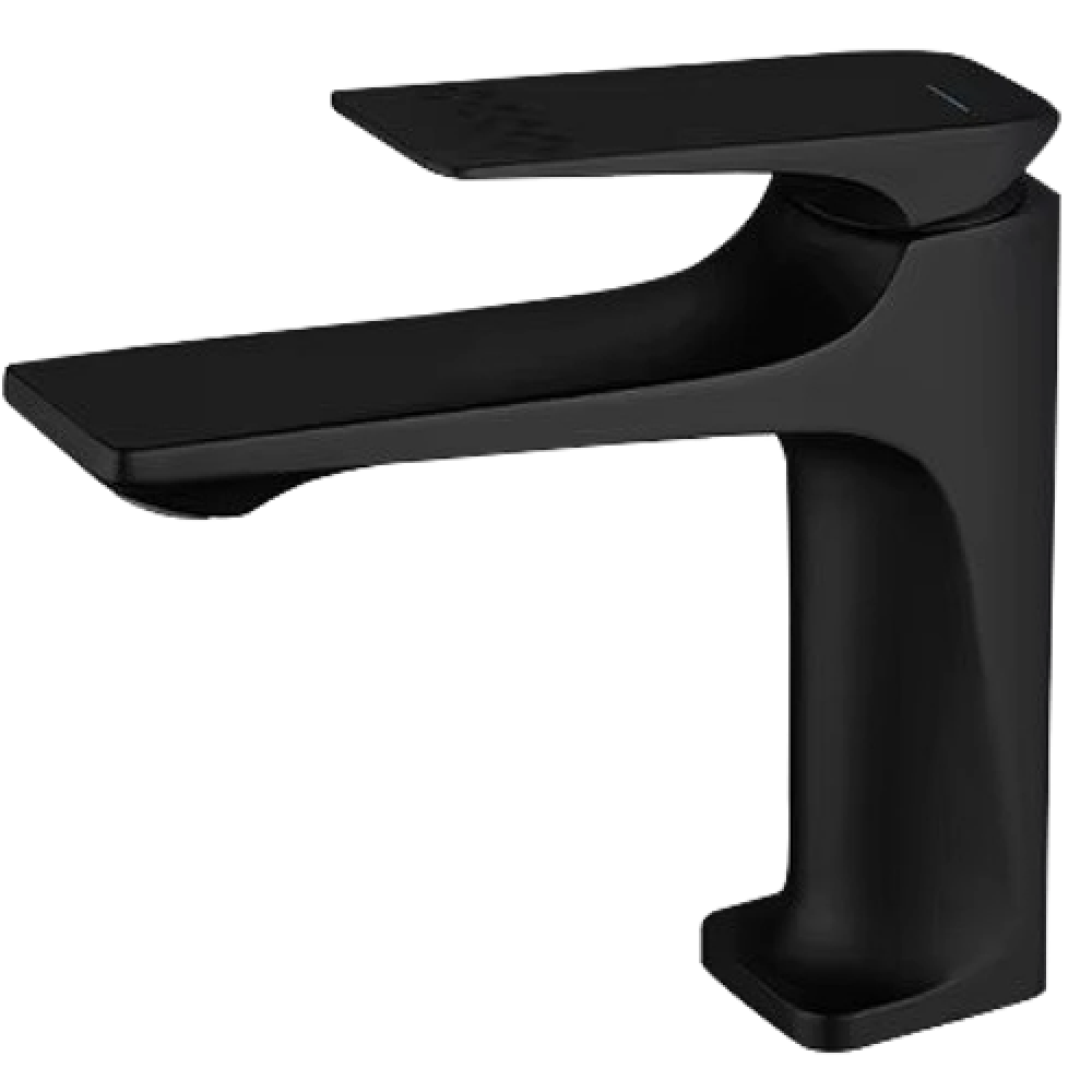 خلاط مغسلة قصير مربع بديكور معين على المقبض اسود