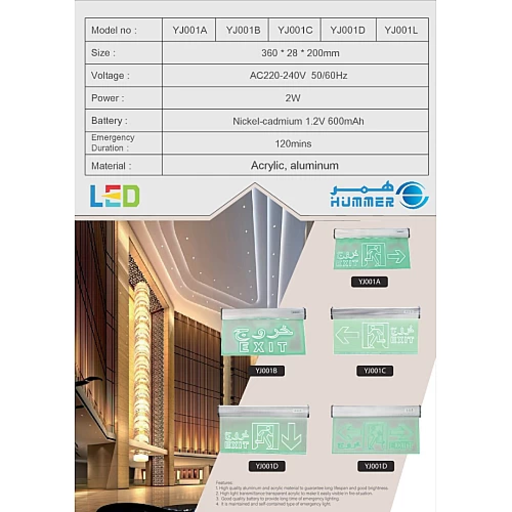 كشاف إضاءة لوحة الطوارئ و الخروج الحل السريع للإنارة في حالات الطوارئ