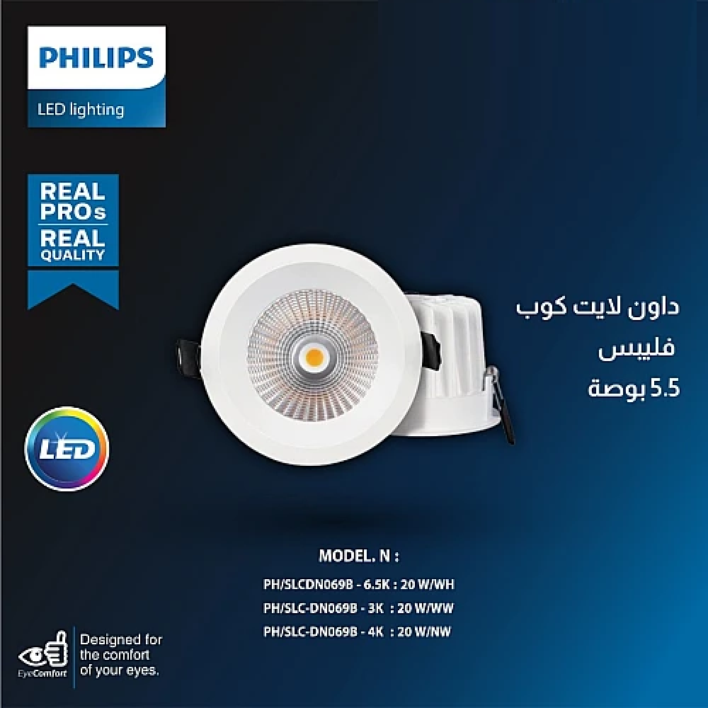 لون الانارة : ابيضالقدرة : 20 واطدرجة حرارة اللون (الكلفن) : 6500kمقاس اطار التركيب : (6 بوصة)/(16 سم)الجهد الكهربائي : 220Vلون الغطاء : إطار شفاف عاكسعدد سنوات الضمان : 2 سنة