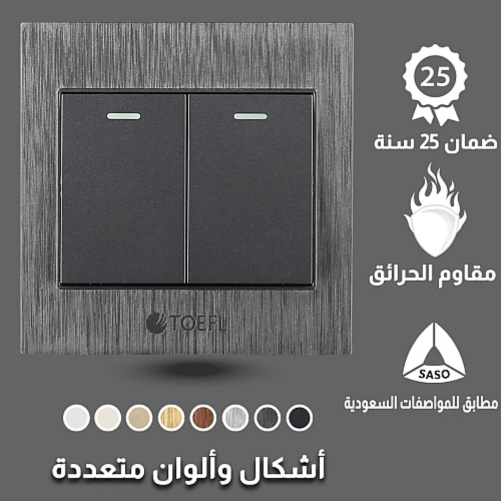 نوع المفتاح : مفتاح ثنائيابعاد المنتج : 7x7cmنوع التركيب : غاطس في الحائطلون الغطاء : رمادي جرافيتعدد سنوات الضمان : 25 سنة