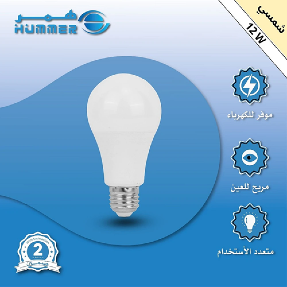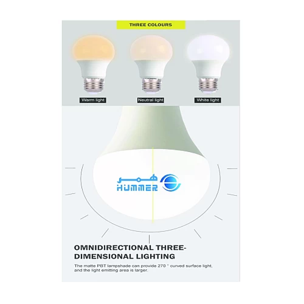 لون الانارة : ابيض واصفر وشمسيمقاس قاعدة الانارة : E27القدرة : 12 واطدرجة حرارة اللون (الكلفن) : 3000k 4000k 6500Kاللومن : 660 لومنالجهد الكهربائي : 220Vعدد سنوات الضمان : 2 سنة