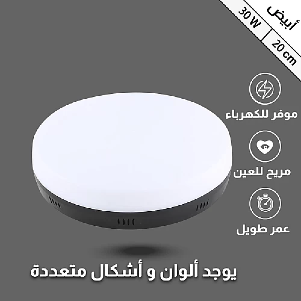كشاف لطش بنل اطار اسود لون ابيض 20 سم 30 واط