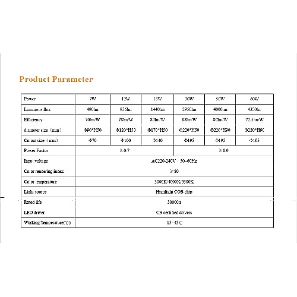 لون الانارة : شمسي كريميالقدرة : 30 واطدرجة حرارة اللون (الكلفن) : 4000Kالمنتج يعمل على : الكهرباء المباشرمقاس اطار التركيب : (8 بوصة)/(20 سم)الجهد الكهربائي : 220Vلون الغطاء : إطار شفاف عاكسعدد سنوات الضمان : 5 سنة