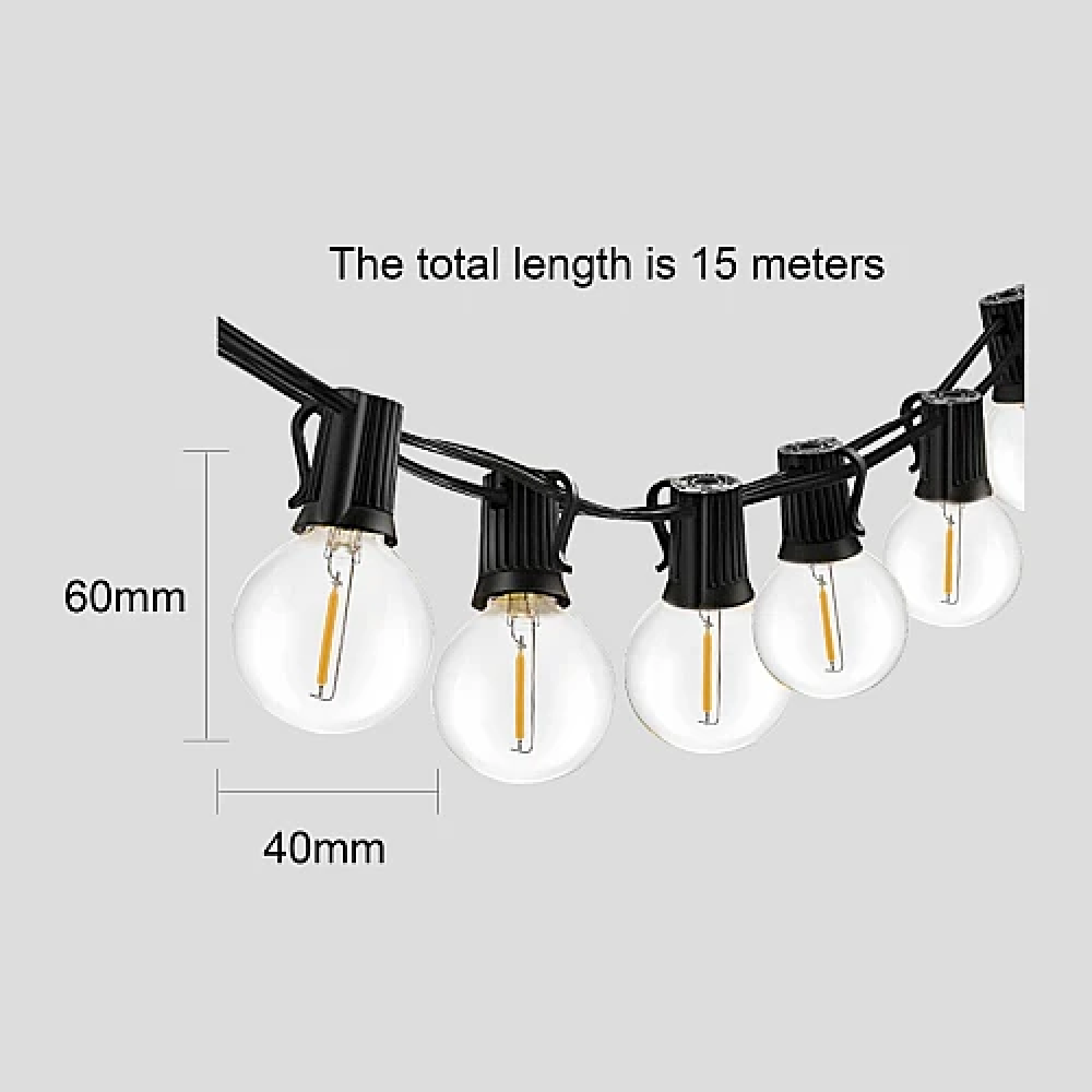 لون الانارة : مصباح تركيب مقاس قاعدة الانارة : E12عدد اللمبات المقترحة للمنتج : 50نوع الإضاءة : هذا المنتج يحتوي على مصباح مرفقةالمنتج يعمل على : كهرباء مباشرابعاد المنتج : 15 مترنوع التركيب : معلق لون الغطاء : اسود