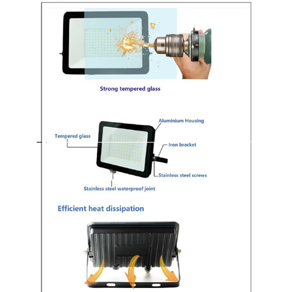 لون الانارة : أبيضالقدرة : 300 واطنوع الإضاءة : LEDالمنتج يعمل على : كهرباء مباشرالجهد الكهربائي : 220Vنوع التركيب : مثبت على سطحعدد سنوات الضمان : 1 سنةمقاومة عالية للظروف الخارجية : نعممقاومة للحرارة و الصدأ :نعم
