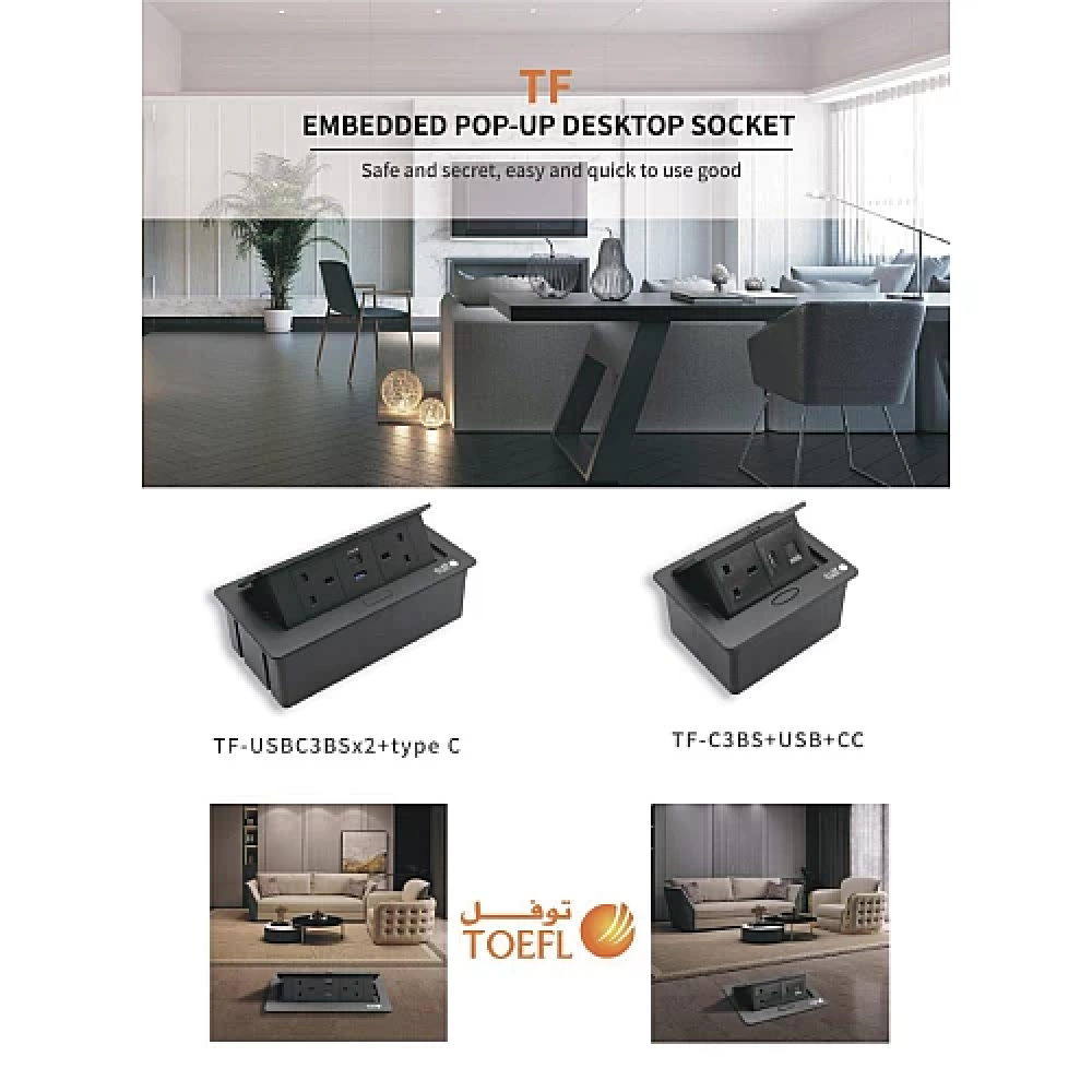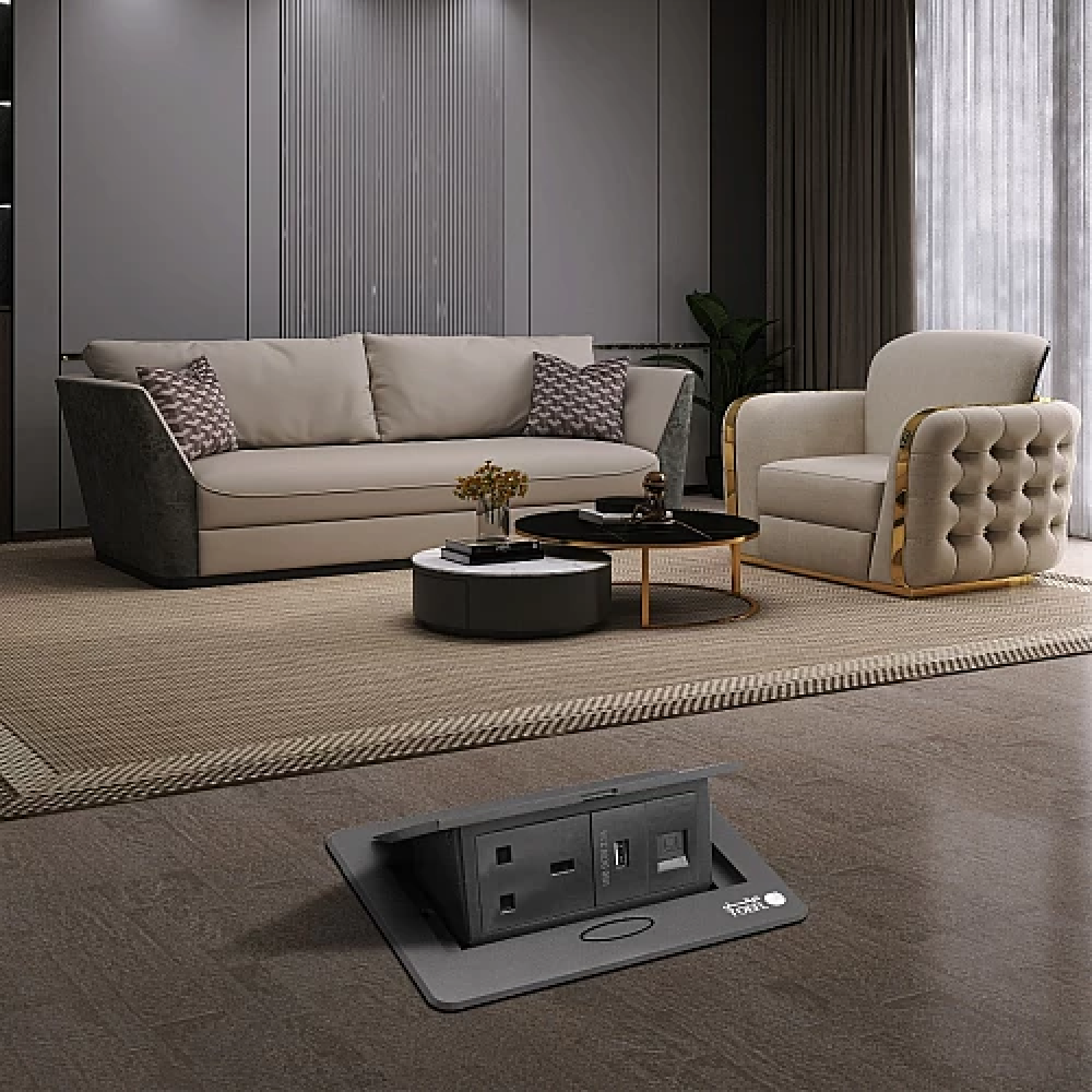 فلوربكس 2 فيش ارضي دفن ثلاثي USB + TYPE-C لون اسود حجري