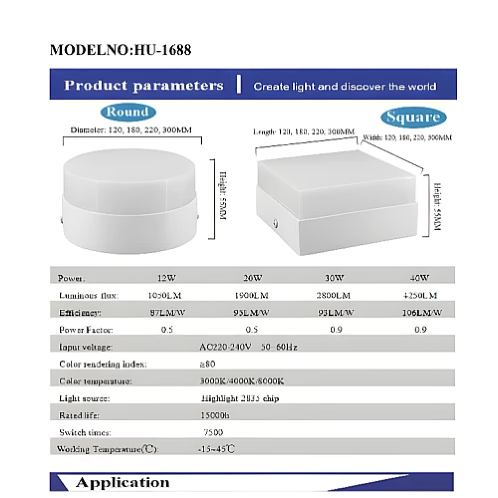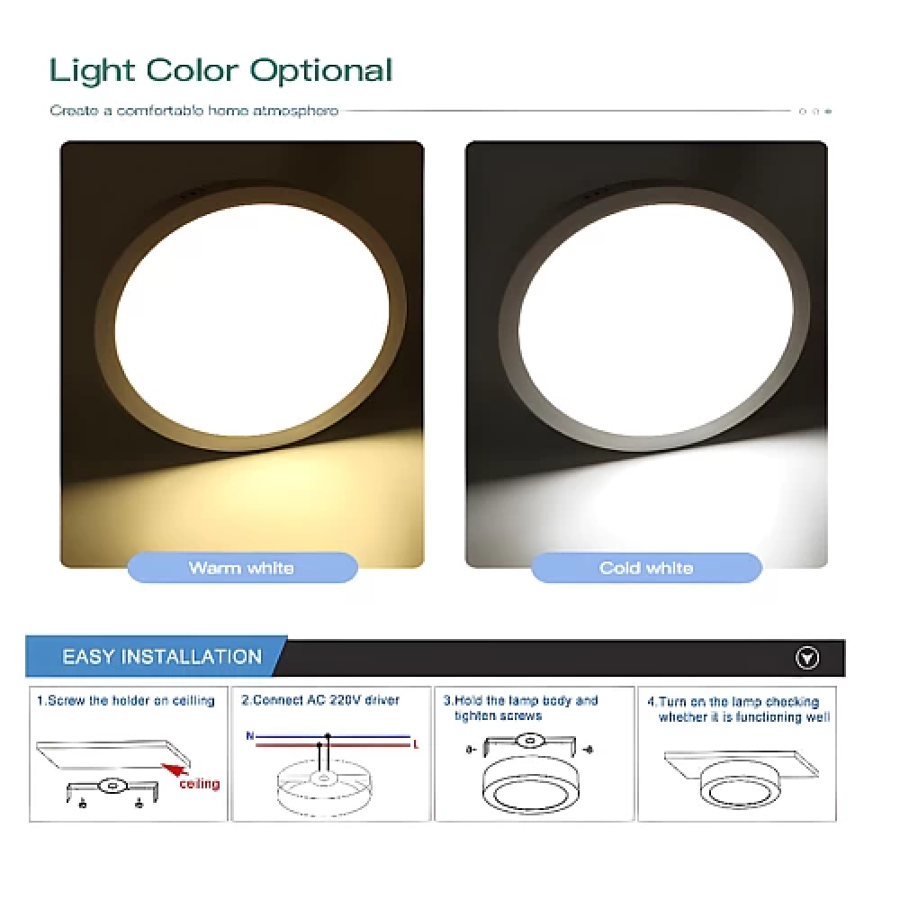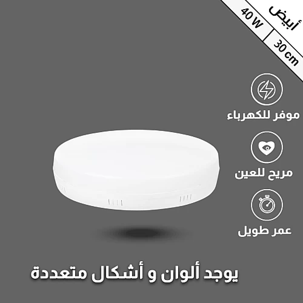 لون الانارة : ابيضالقدرة : 40 واطدرجة حرارة اللون (الكلفن) : 6500kالمنتج يعمل على : الكهرباء المباشرمقاس اطار التركيب : (12 بوصة)/(30 سم)الجهد الكهربائي : 220Vلون الغطاء : إطار معتم ثلجيعدد سنوات الضمان : 2 سنة