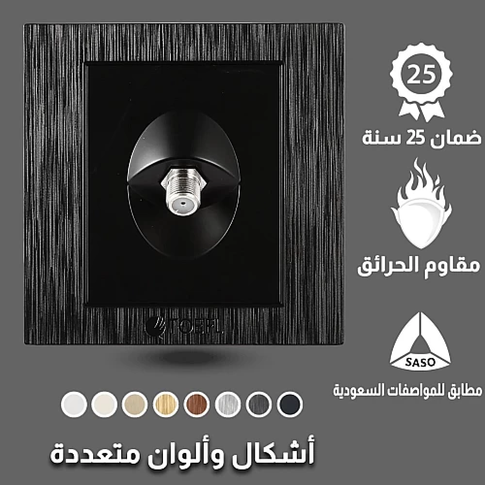 نوع المفتاح : منفذ دشابعاد المنتج : 7x7cmنوع التركيب : غاطس في الحائطلون الغطاء : اسود حجريعدد سنوات الضمان : 25 سنة