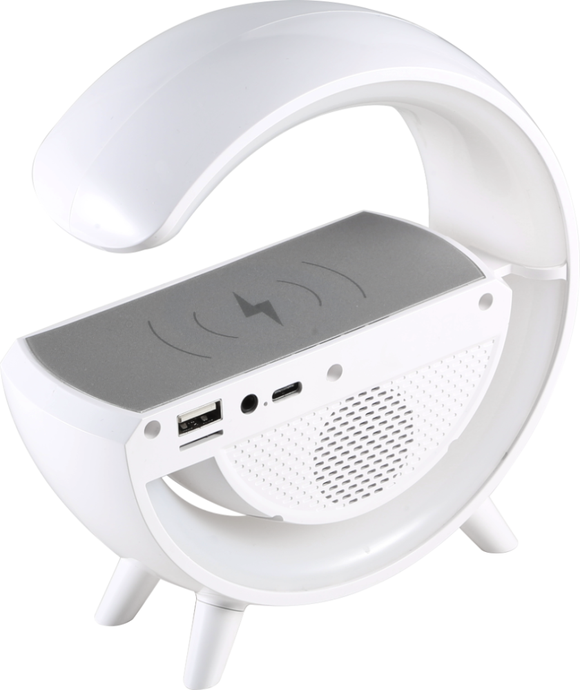 سماعة سبيكر مع شاحن لاسلكي و إضاءة RGB ملون لون الغطاء ابيض