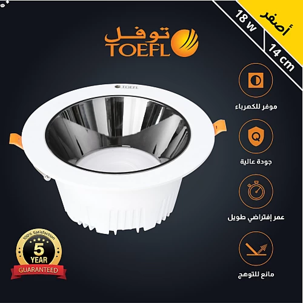 كشاف دفن لون اصفر 14 سم مانع للتوهج 18 واط
