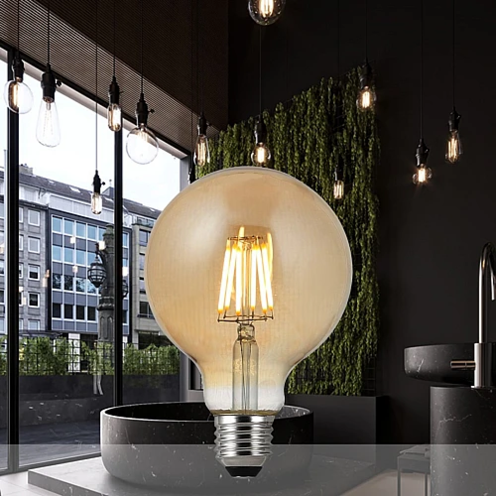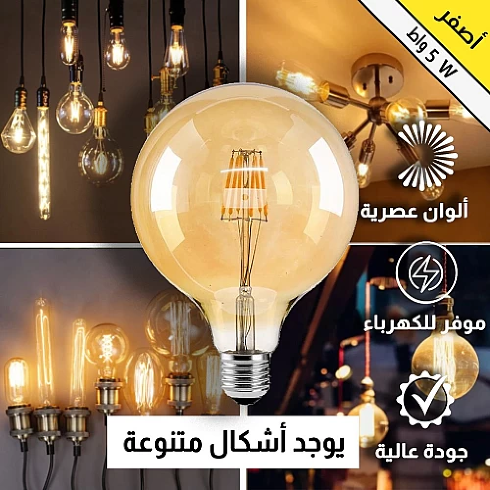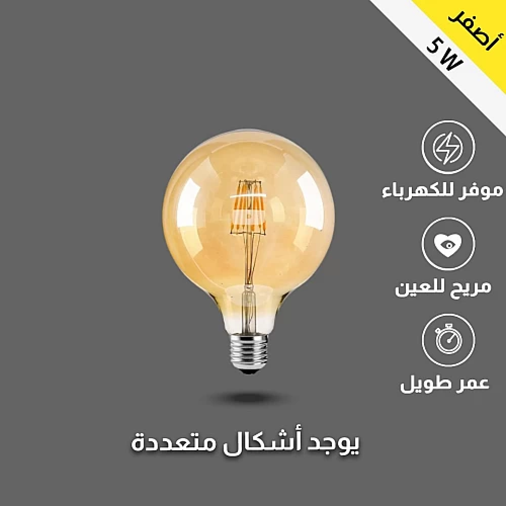 لمبات ديكور شكل قزاز دائري جميل 5 واط قطر 9.5 سم لون عسلي ذهبي يمكن استخدامها في لمبات نجف والثريات وتمنح اضاءة صفراء عالية الجودة E27