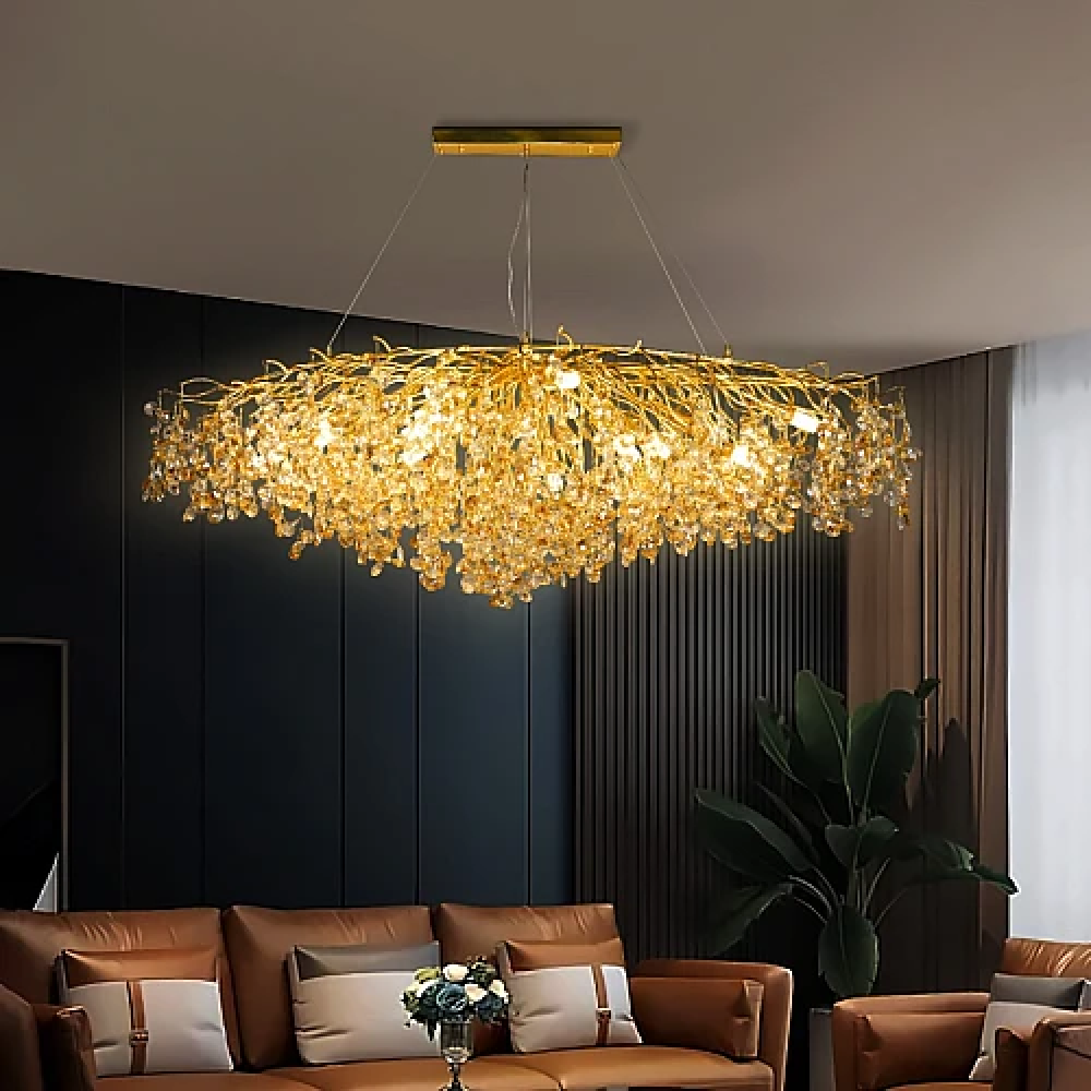 نجف مودرن قطر 160 سم ذهبي مع شفاف مع عسلي E14*16L