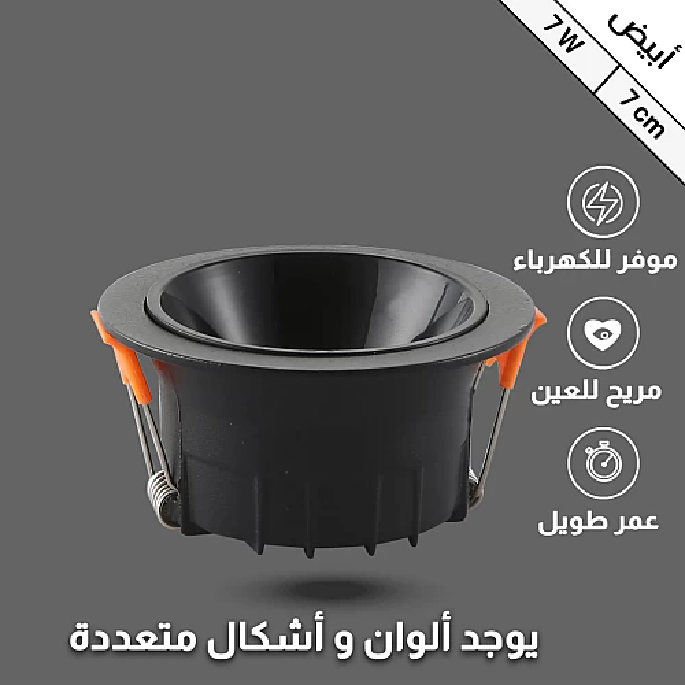 لون الانارة : ابيضالقدرة : 7 واطدرجة حرارة اللون (الكلفن) : 6500kمقاس اطار التركيب : (2.5 بوصة)/(7 سم)الجهد الكهربائي : 220Vلون الغطاء : إطار مانع للتوهج Anti-Glareعدد سنوات الضمان : 3 سنة
