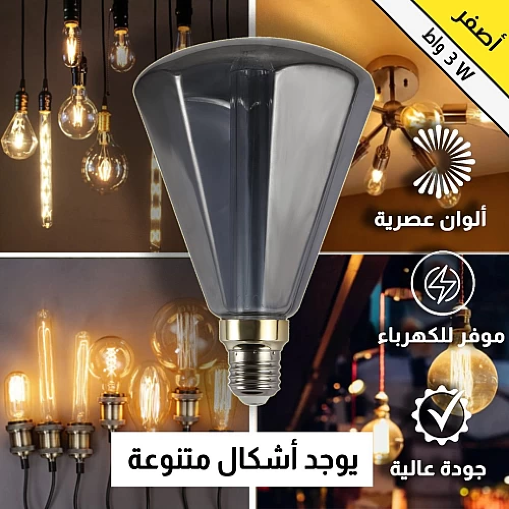 لمبة ديكورية رمادي لون الانارة اصفر 3 واط