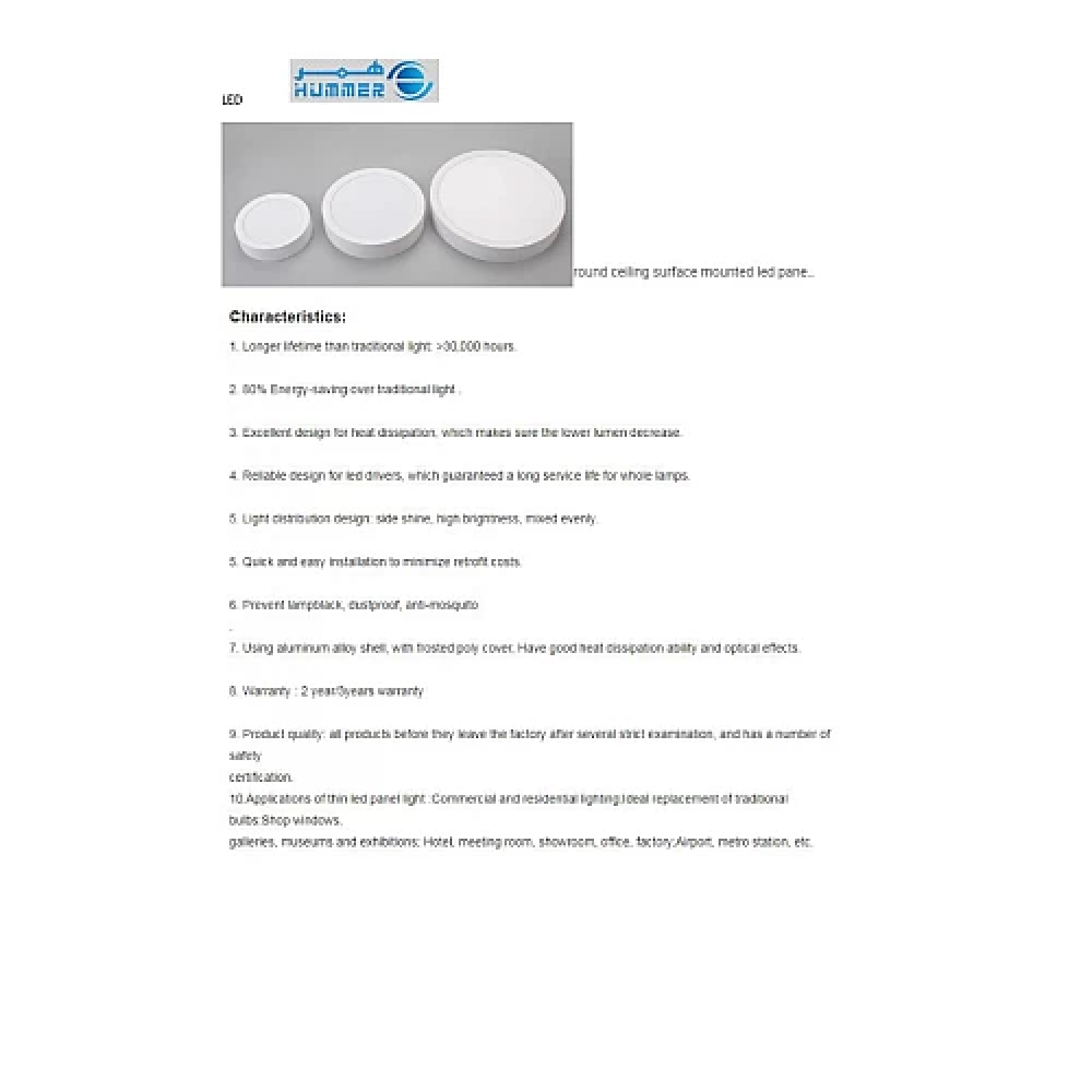 لون الانارة : اصفرالقدرة : 18 واطدرجة حرارة اللون (الكلفن) : 3000Kاللومن : 1260 لومنمقاس اطار التركيب : (8 بوصة)/(20 سم)الجهد الكهربائي : 220Vلون الغطاء : إطار معتم ثلجيعدد سنوات الضمان : 2 سنة