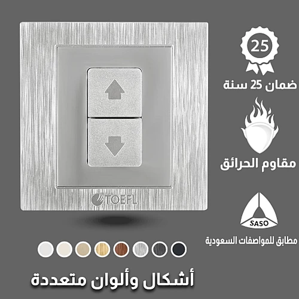نوع المفتاح : مفتاح شتر ستارة كهرباء 16 امبيرابعاد المنتج : 7x7cmنوع التركيب : غاطس في الحائطلون الغطاء : فضيعدد سنوات الضمان : 25 سنة