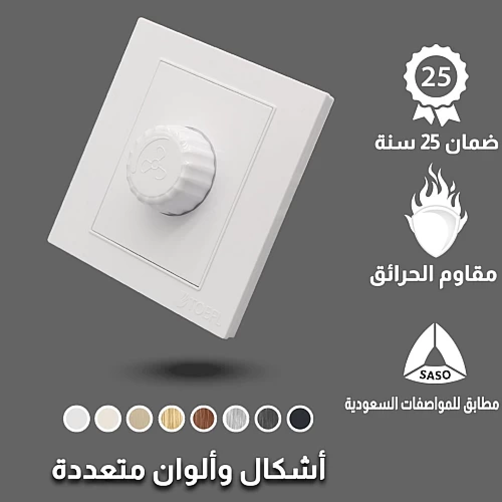 نوع المفتاح : مفتاح دايمر مروحه 300 واطابعاد المنتج : 7x7cmنوع التركيب : غاطس في الحائطلون الغطاء : ابيضعدد سنوات الضمان : 25 سنة