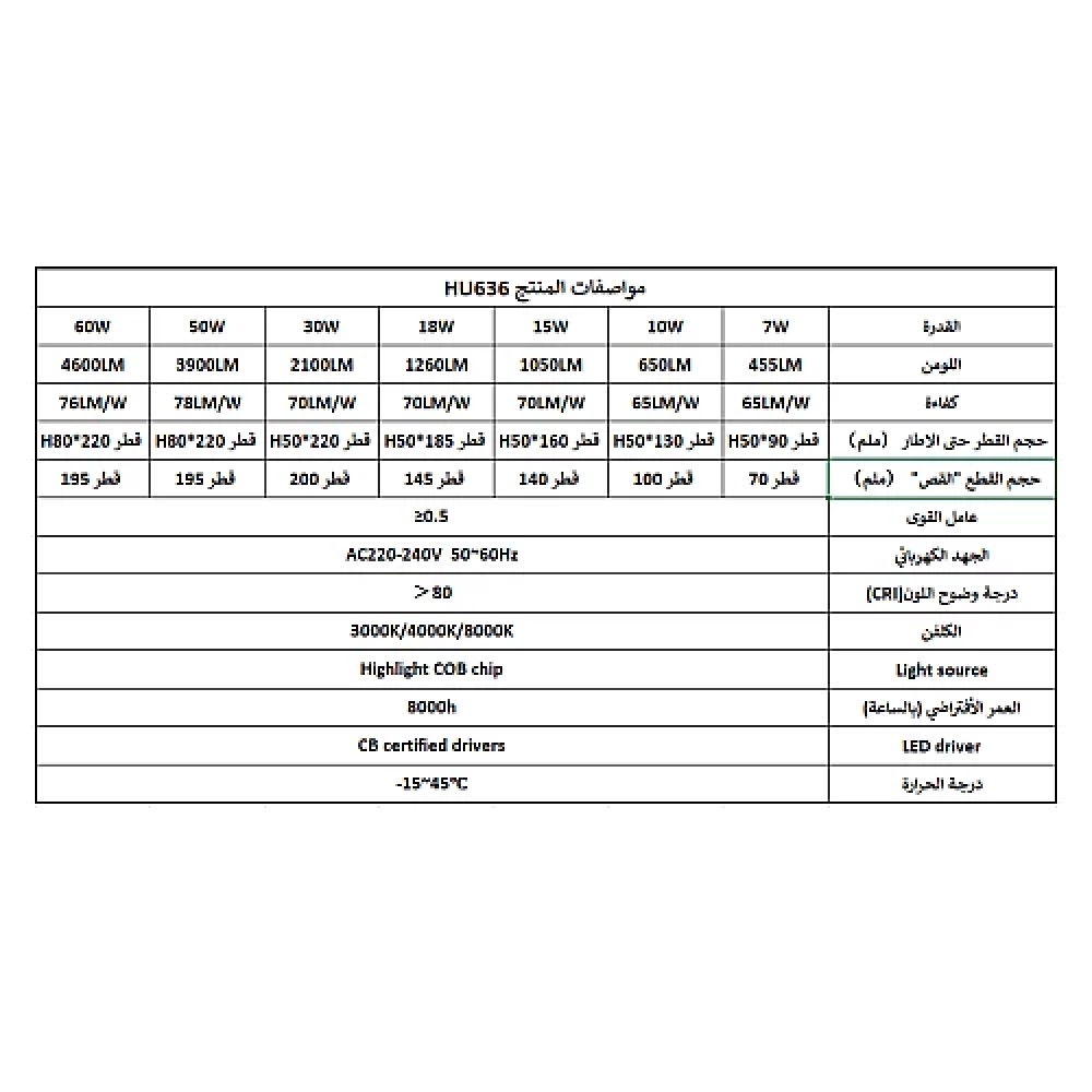 درجة حرارة اللون (الكلفن) : 3000K + 4000K +8000K