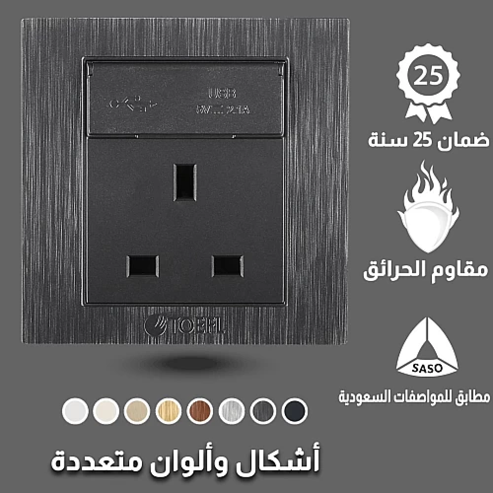 نوع المفتاح : فيش ثلاثي مع منفذ يو اس بيابعاد المنتج : 7x7cmنوع التركيب : غاطس في الحائطلون الغطاء : رمادي جرافيتعدد سنوات الضمان : 25 سنة