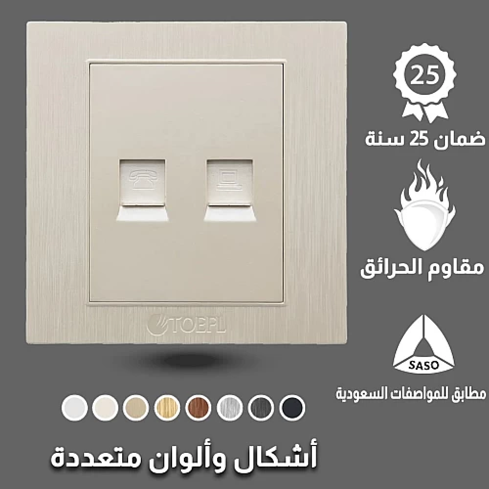 نوع المفتاح : منفذ كمبيوتر مع تلفونابعاد المنتج : 7x7cmنوع التركيب : غاطس في الحائطلون الغطاء : لوليعدد سنوات الضمان : 25 سنة