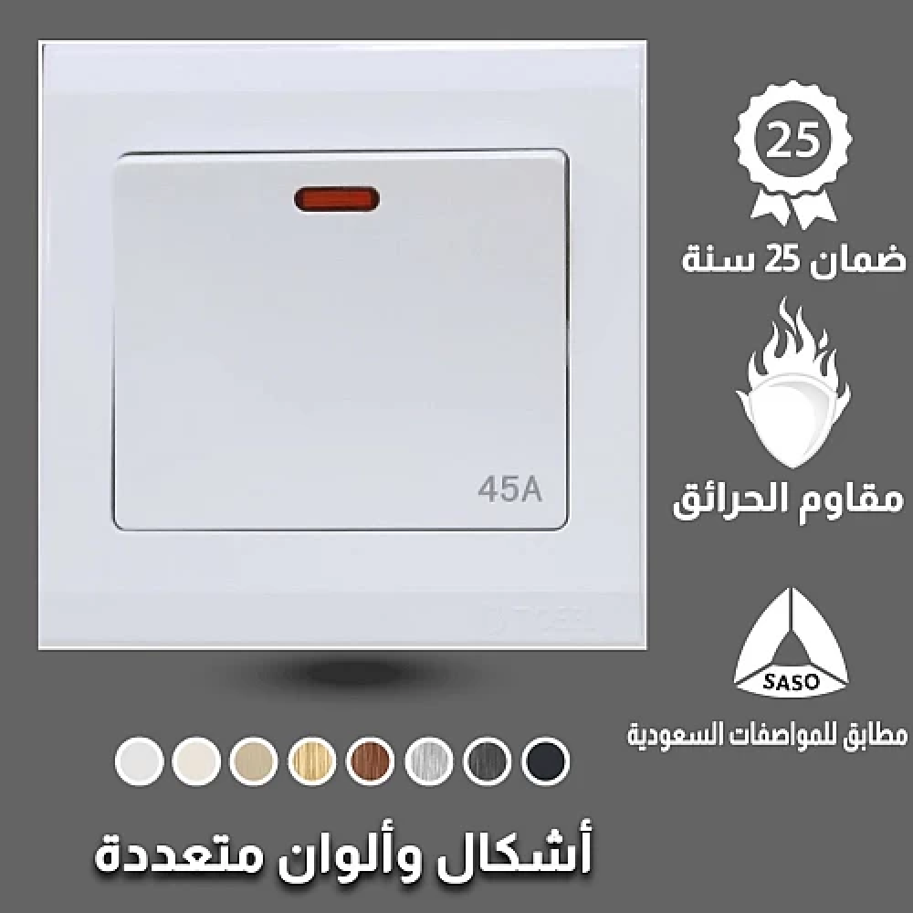 عدد سنوات الضمان : 25 سنةابعاد المنتج : 7x7cm لون الغطاء : أبيضمطابقة للمواصفات السعودية و الخليجية : نعم نوع التركيب : غاطس في الحائط نوع المفتاح : مفتاح مكيف